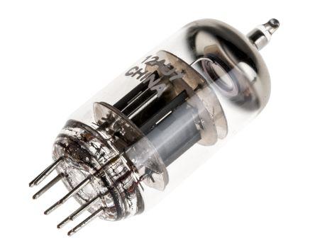 This is Double Triode Thermionic Valve B9A Base 2.75W 12.6 V 6.3V 22.5 (Dia.) x 57mm manufactured by RS Pro. The manufacturer part number is 678-4105. Its diameter is 22.5mm. The given dimensions of the product include 22.5 (dia.) x 57mm. It has a 12.6 v, 6.3v heater voltage . About 0.15 a, 0.3a is the required heater current . Its body length is 50mm. Designed as a b9a base type. With 2.75w anode required power . It has an overall length of 57mm. It contains 9 pins. It has about 300v output voltage .