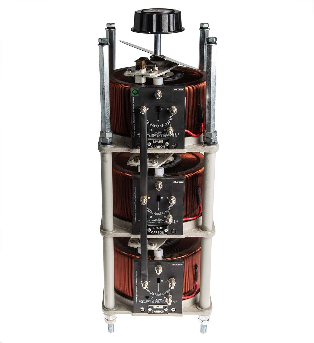 This is 3 Phase 8.14kVA Variac 3 Output 415V 10A manufactured by RS Pro. The manufacturer part number is 890-2853. Additionally, the product is supplied with 3 outputs. The given dimensions of the product include 175 x 175 x 410mm. The typical product's weight is 27kg. In addition, it has a secondary 0 → 415 v, 0 → 470 v voltage rating . It has about 415v primary voltage rating . It has a standard 10a primary current rating . It has a knob that has a clockwise knob rotation . Its accurate length is 175mm. It carries 60hz of maximum operating frequency. Furthermore, the product is 175mm wide. The product comes in 410mm depth. The product has been well-designed with open construction. It has a minimum 50hz operating frequency . The product is designed with a wire termination termination. It provides robust protection features, such as overload protection. The product is available in surface mount configuration. Feature 8.14kva of power rating. Whereas it is comprised of 3 phases.