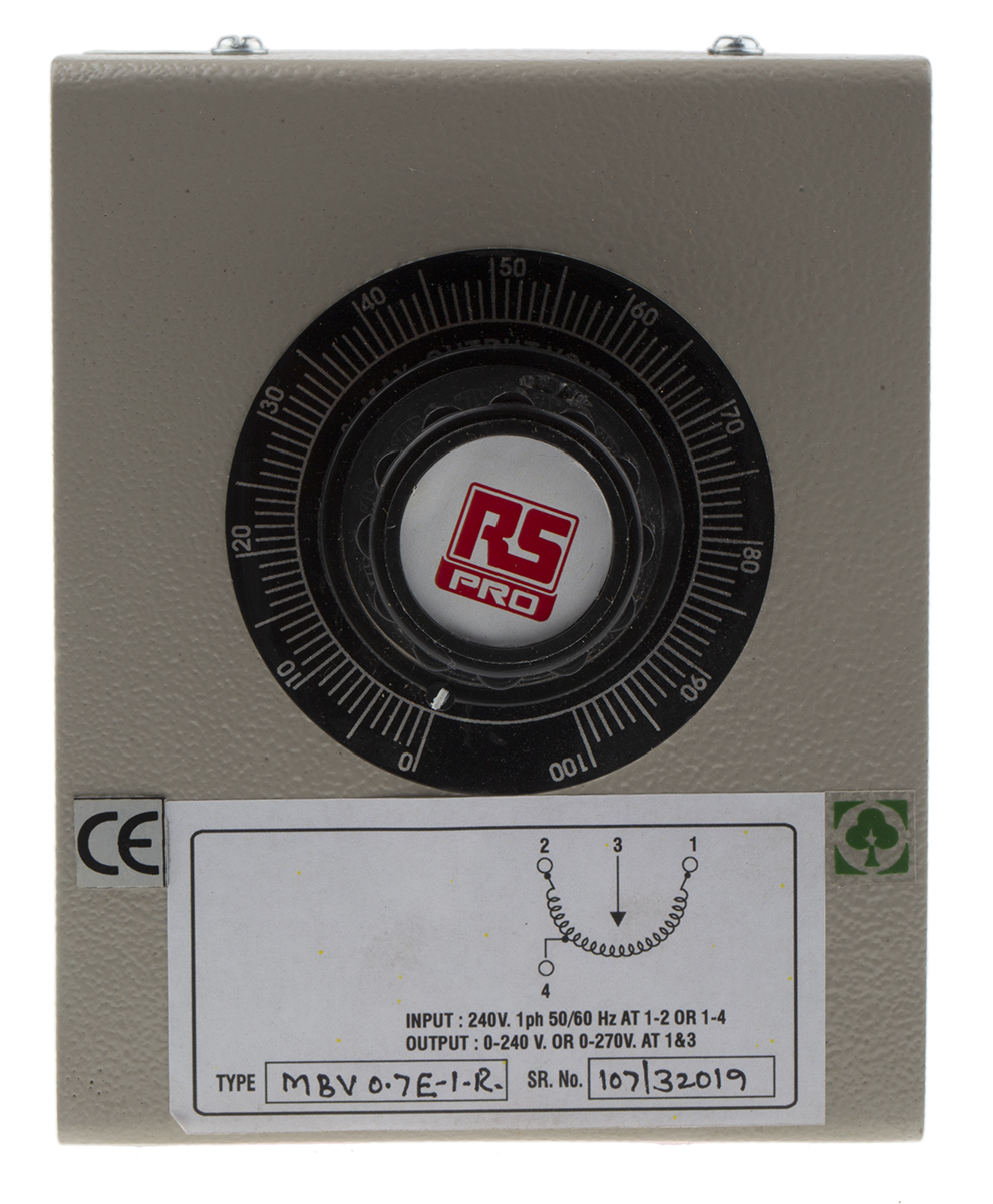 This is 1 Phase 170VA Variac 1 Output 240V 700mA manufactured by RS Pro. The manufacturer part number is 890-2799. Additionally, the product is supplied with 1 outputs. The given dimensions of the product include 160 x 130 x 160mm. The typical product's weight is 1.9kg. In addition, it has a secondary 0 → 240 v, 0 → 270 v voltage rating . It has about 240v primary voltage rating . It has a standard 0.7a primary current rating . It has a knob that has a clockwise knob rotation . Its accurate length is 160mm. It carries 60hz of maximum operating frequency. Furthermore, the product is 130mm wide. The product comes in 160mm depth. The product has been well-designed with enclosed construction. The product is designed with a wire termination termination. It provides robust protection features, such as overload protection. The product is available in surface mount configuration. Feature 170va of power rating. Whereas it is comprised of 1 phases.