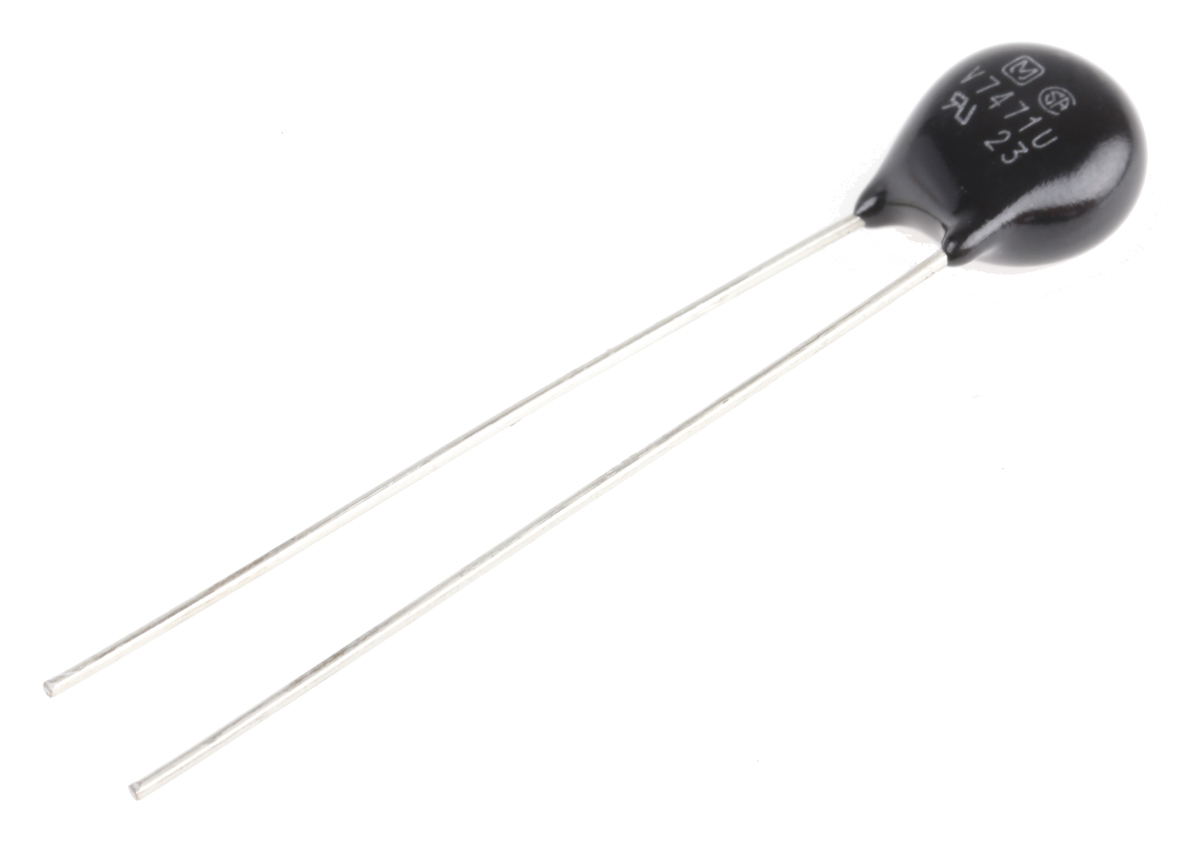 This is ZNR Series Metal Oxide Varistor 100pF Clamping 775V Varistor 470V manufactured by Panasonic. The manufacturer part number is ERZV07D471. It has about 470v varistor voltage . Its diameter is 8.5mm. The given dimensions of the product include 8.5 (dia.) x 5.8mm. The clamping voltage is about 775v . The product v, is a highly preferred choice for users. It carries an energy of 42j. The product is made from highly stable and reliable znr. The product has a maximum 300v AC voltage rating . It is 5.8mm thick. It provides a 100pf of capacitance value. Its accurate length is 31.5mm. The lead features 5mm pitch. Its clamping current is approximately 10a . It can withstand a maximum 1750a surge current . It has a maximum 385v DC voltage rating .