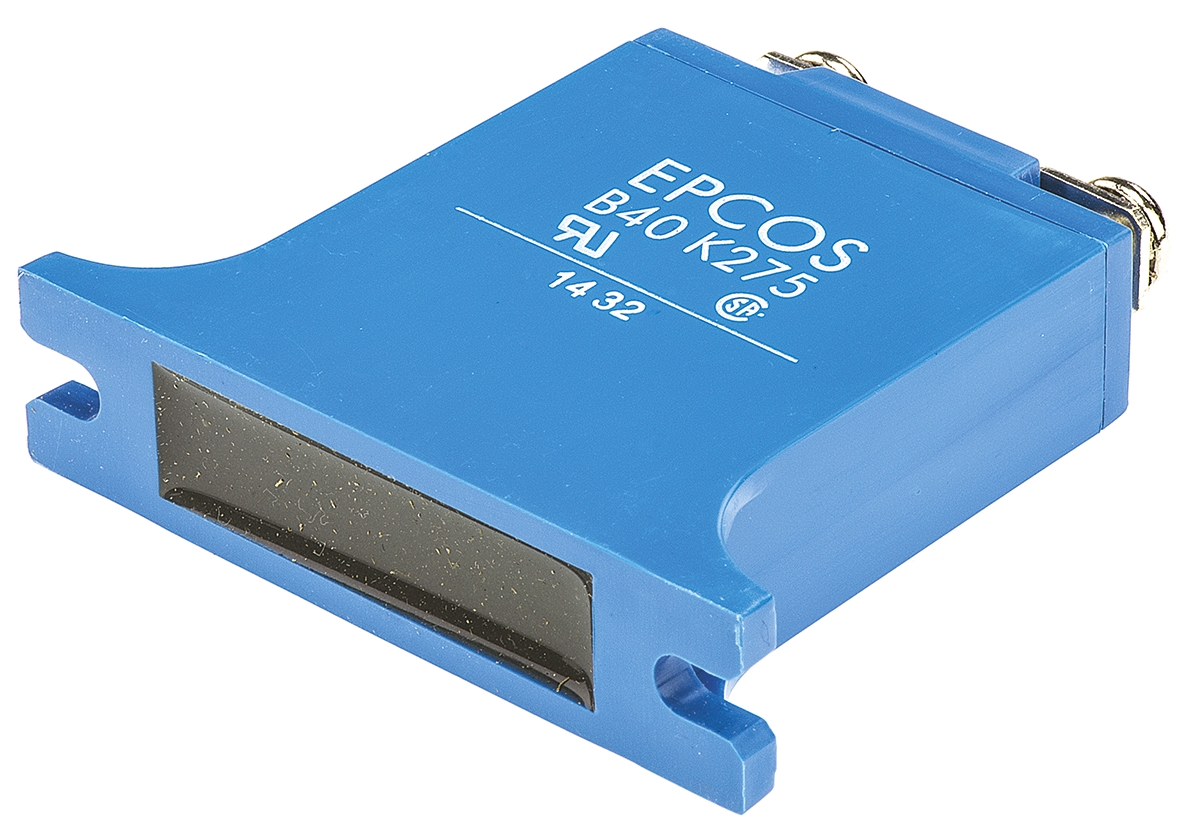 This is HighE Series Metal Oxide Varistor 2.7nF 300A Clamping 710V Varistor 430V manufactured by EPCOS. The manufacturer part number is B72240B0271K001. It has about 430v varistor voltage . Its diameter is 40mm. The given dimensions of the product include 40 (dia.) x 14mm. The clamping voltage is about 710v . The product highe, is a highly preferred choice for users. It carries an energy of 550j. The product is made from highly stable and reliable metal. Its accurate length is 60mm. The product has a maximum 275v AC voltage rating . It is 14mm thick. It provides a 2.7nf of capacitance value. The product comes in 14mm depth. The lead features 24mm pitch. Its clamping current is approximately 300a . It can withstand a maximum 40000a surge current . It has a maximum 350v DC voltage rating .