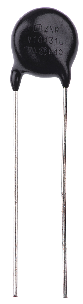 This is ZNR Series Metal Oxide Varistor 270pF 25A Clamping 710V Varistor 430V manufactured by Panasonic. The manufacturer part number is ERZV10D431. It has about 430v varistor voltage . Its diameter is 11.5mm. The given dimensions of the product include 11.5 (dia.) x 6mm. The clamping voltage is about 710v . The product v, is a highly preferred choice for users. It carries an energy of 80j. The product is made from highly stable and reliable znr. The product has a maximum 275v AC voltage rating . It is 6mm thick. It provides a 270pf of capacitance value. Its accurate length is 34.5mm. The lead features 7.5mm pitch. Its clamping current is approximately 25a . It can withstand a maximum 3500a surge current . It has a maximum 350v DC voltage rating .