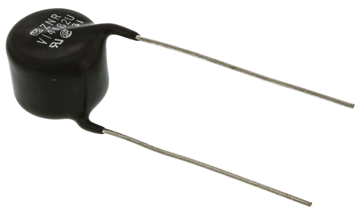 This is ZNR Series Metal Oxide Varistor Clamping 2970V Varistor 1800V manufactured by Panasonic. The manufacturer part number is ERZV14D182. It has about 1800v varistor voltage . Its diameter is 17mm. The given dimensions of the product include 17 (dia.) x 14.4mm. The clamping voltage is about 2970v . The product v, is a highly preferred choice for users. It carries an energy of 510j. The product is made from highly stable and reliable znr. The product has a maximum 1000v AC voltage rating . It is 14.4mm thick. It provides a 120pf of capacitance value. Its accurate length is 38.5mm. The lead features 15mm pitch. Its clamping current is approximately 50a . It can withstand a maximum 5000a surge current . It has a maximum 1465v DC voltage rating .
