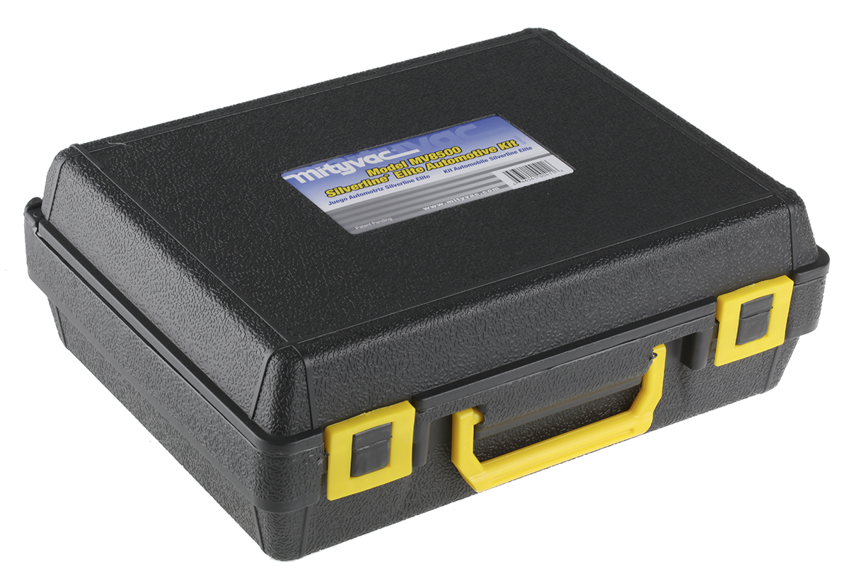 This is Vehicle Test Kit manufactured by Mityvac. The manufacturer part number is MV8500. The silverline automotive kit is designed to provide robust applications in a variety of specific settings.