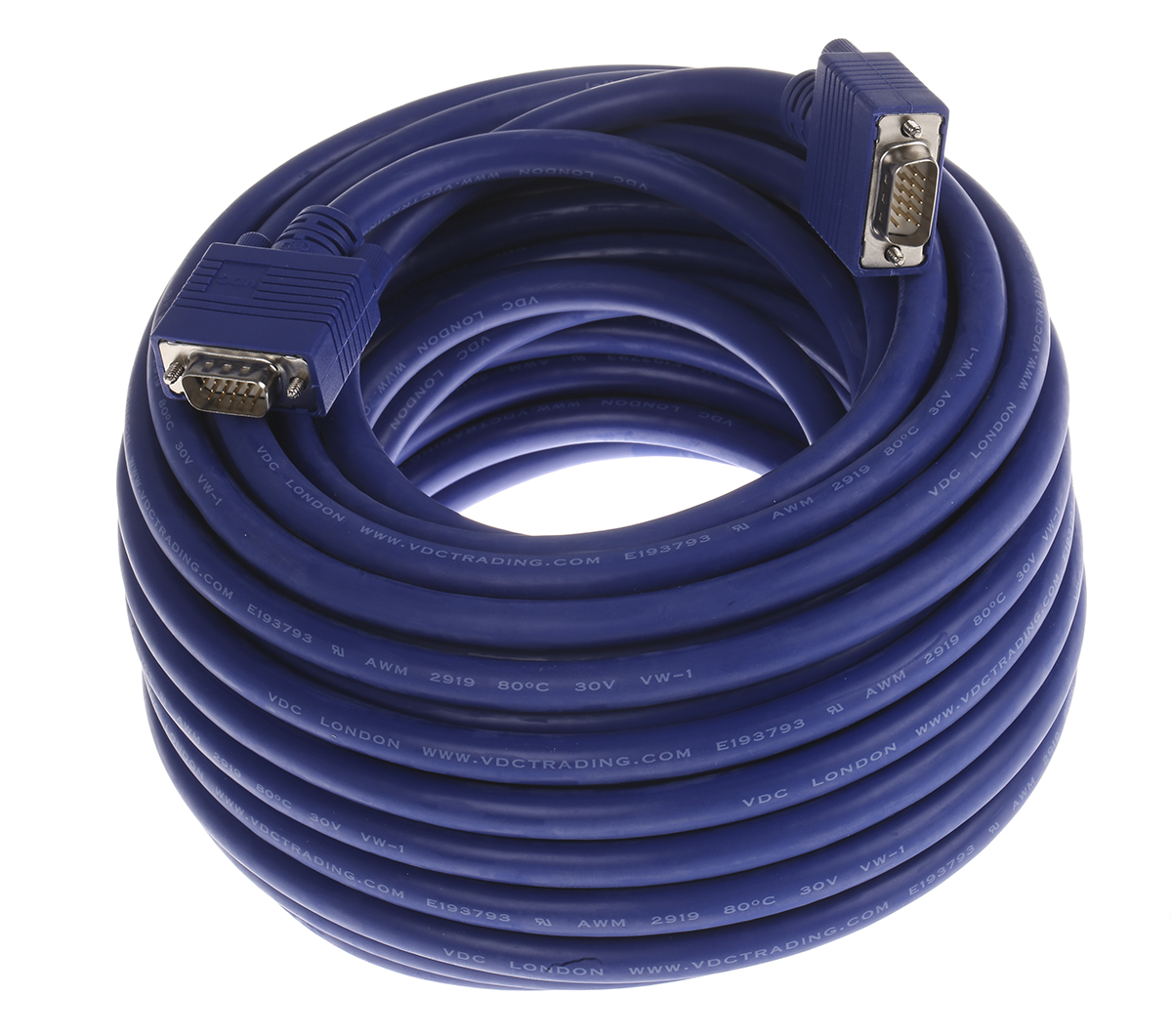 This is Male VGA Plug to Male VGA Plug Video Cable Assembly 15m manufactured by Van Damme. The manufacturer part number is 104-241-215. Connector 2 is a male connector. This connector 1 is a male. The sheath has an adorable blue colour. Its accurate length is 15m. While the Connector 2 is vga. Connector 1 is vga.
