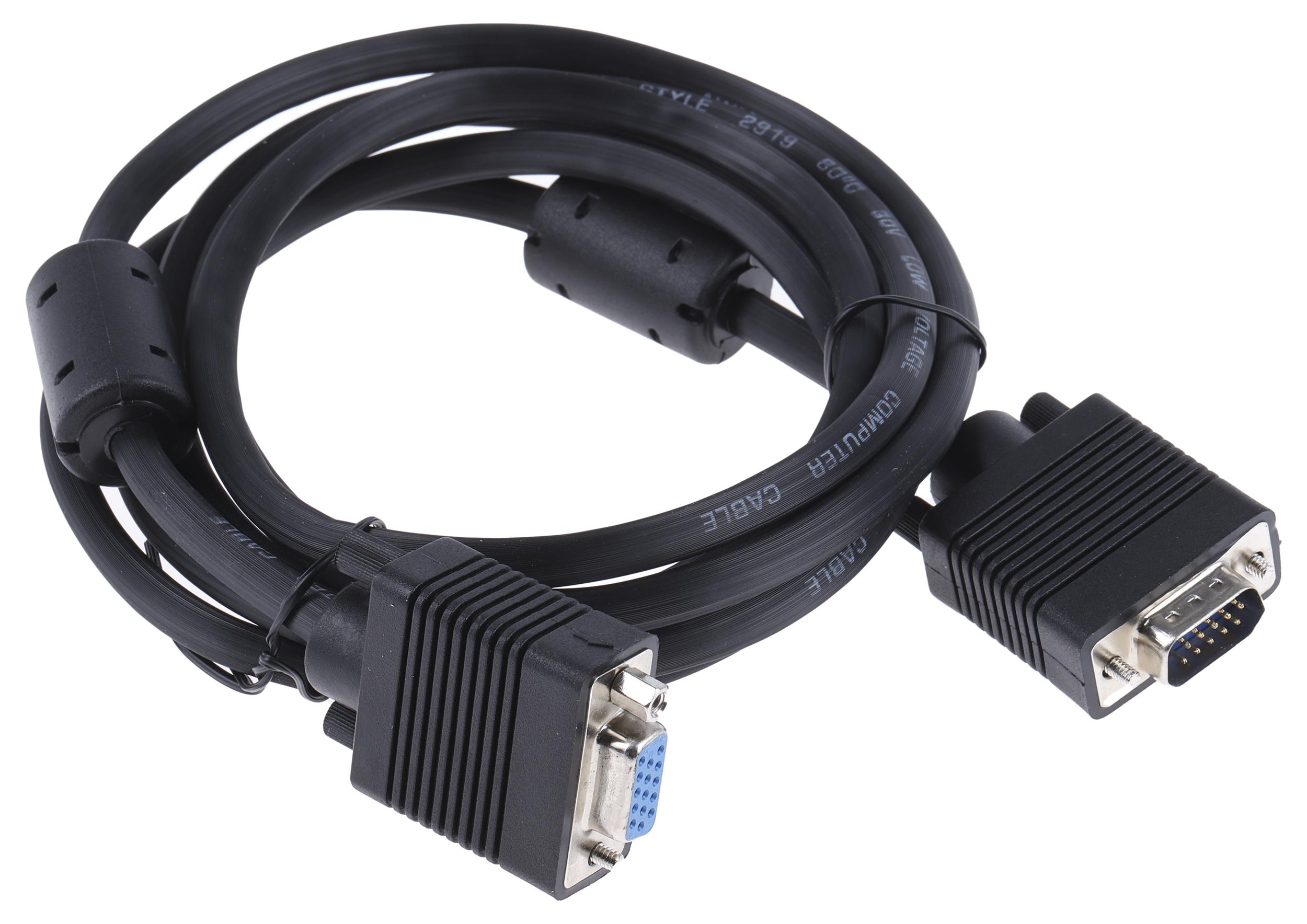 This is Male VGA HD15 Plug to Female VGA HD15 Socket 2m manufactured by RS PRO. The manufacturer part number is 182-8538. Connector 2 is a female connector. Moreover, the product has a nominal 200 v dc voltage rating. The strand size includes 0.12 mm. This connector 1 is a male. The sheath has an adorable black colour. Its accurate length is 2m. Whereas the outer sheath is manufactured from pvc material. While the Connector 2 is vga. Connector 1 is vga.