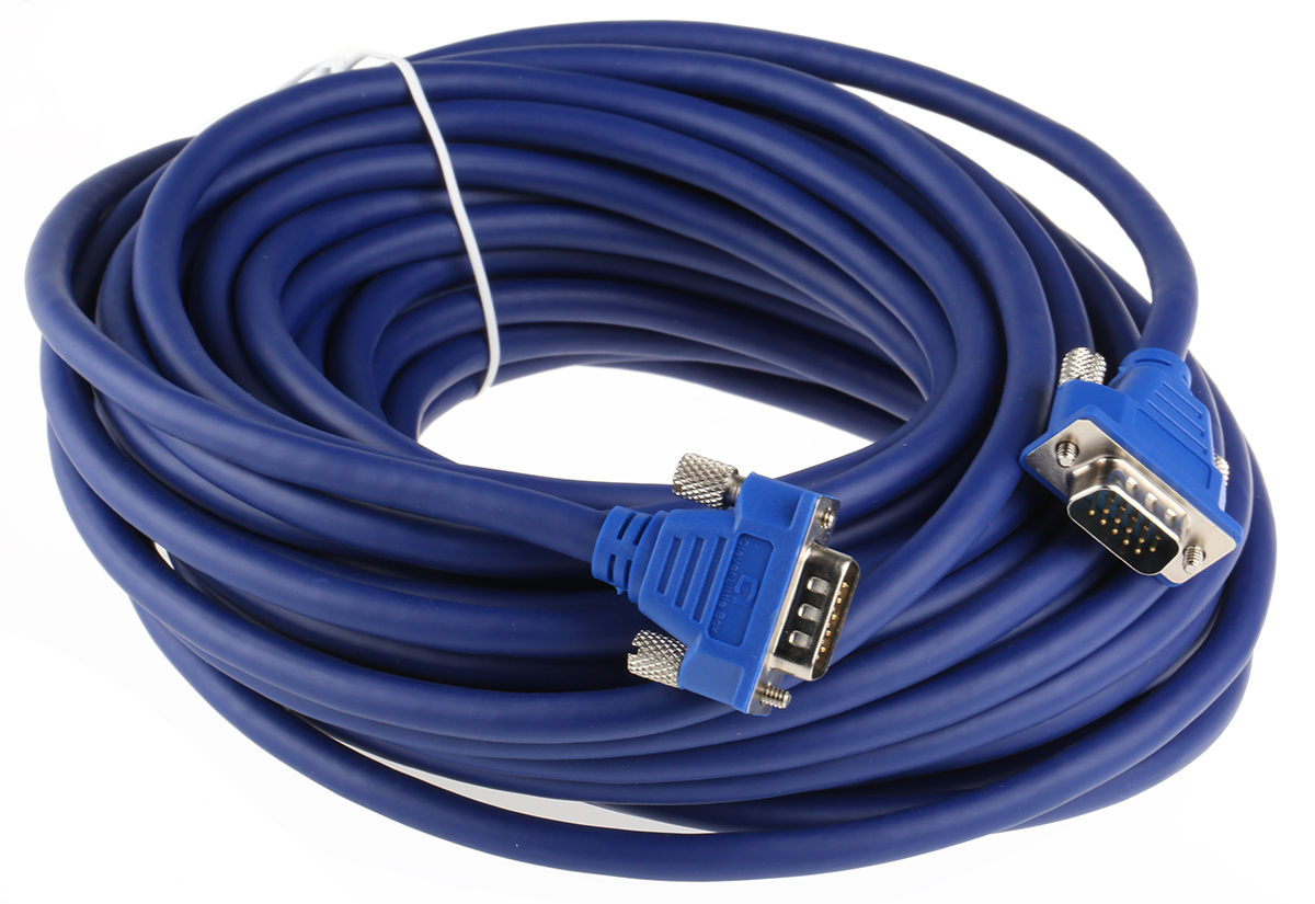 This is Clever Little Box VGA to VGA cable Male to Male 15m manufactured by RS PRO. The manufacturer part number is 665-9566. Connector 2 is a male connector. This connector 1 is a male. The sheath has an adorable blue colour. Its accurate length is 15m. While the Connector 2 is vga. Connector 1 is vga.