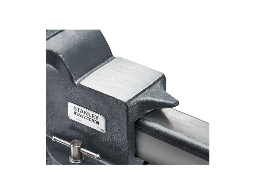 The Stanley 1‑83‑068 bench vice is a heavy‑duty tool designed for professional workshops and industrial environments. With a jaw width of 150 mm and throat depth of 105 mm, it is built to clamp large workpieces securely. The vice is cast‑iron constructed for maximum durability and features chrome‑plated hardware to resist corrosion. Additional features include a swivelling and locking base for positioning flexibility and roll‑formed screw threads for smoother operation and extended life.