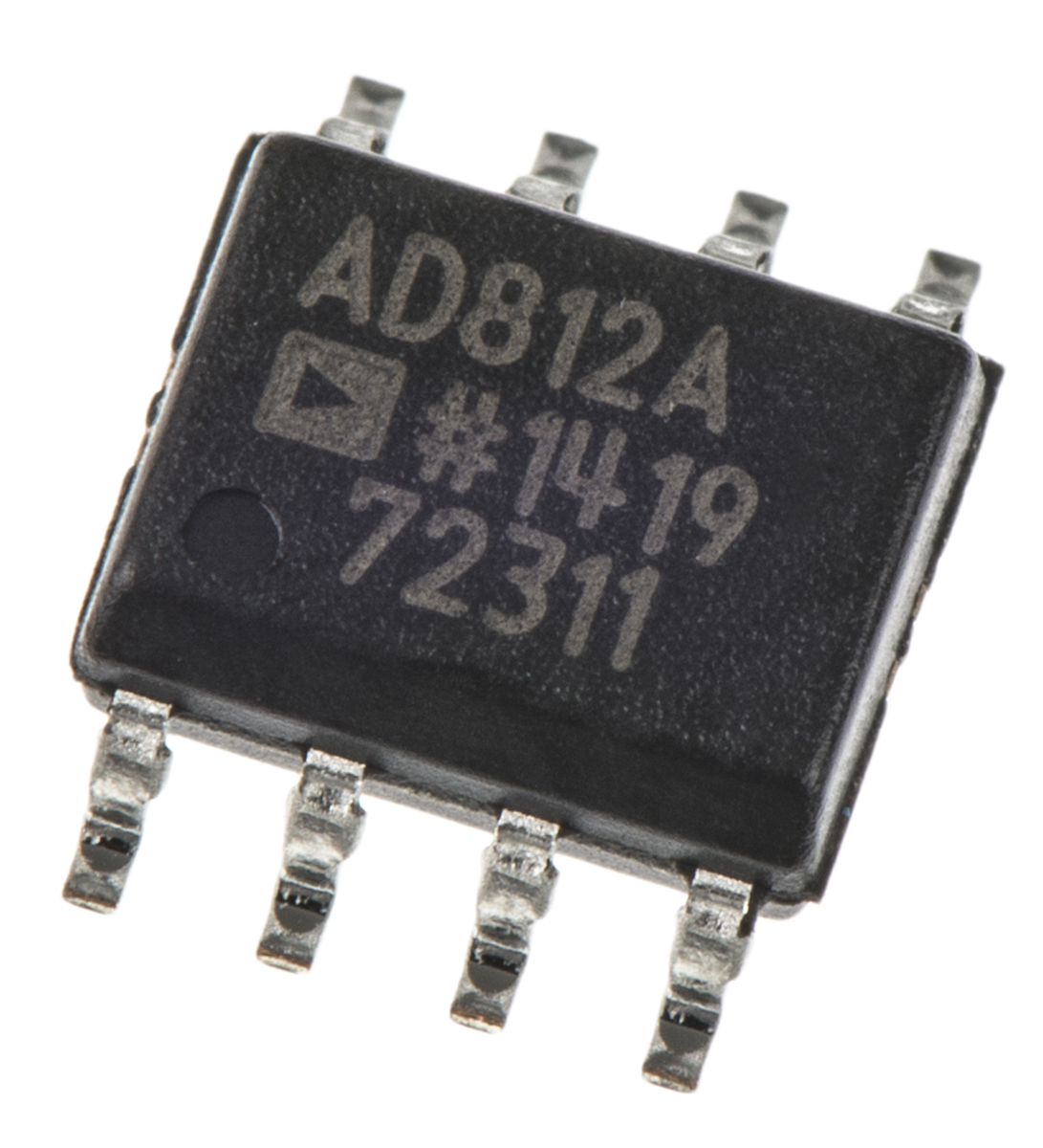 This is Video Amp 2-channel 125V/μs 8-Pin SOIC manufactured by Analog Devices. The manufacturer part number is AD812ARZ. While 12 v, 15 v, 3 v, 5 v, 9v is the typical dual supply voltage. The given dimensions of the product include 5 x 4 x 1.5mm. The product is available in surface mount configuration. Furthermore, it has a typical 125v/µs of slew rate. It is a type of dual, single power supply. It comprises 2 channels per chip. It has a typical single supply voltage of 3 v, 5 v, 9 v, 12 v, 15 v, 18 v, 24 v, 28 v. In addition, the height is 1.5mm. Furthermore, the product is 4mm wide. Its accurate length is 5mm. The package is a sort of soic. Whereas, the minimum operating temperature of the product is -40 °c. Additionally, it includes video amplifier ic type IC . It has a maximum operating temperature of +85 °c. It contains 8 pins.