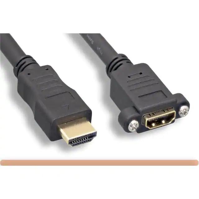 This is manufactured by Micro Connectors, Inc.. The manufacturer part number is H2-03PMEX. The second integral connector has a free hanging (in-line) mounting configuration. The product is rohs compliant. The product's typical Applications include uses in high definition multimedia interface. Furthermore, the product is shielded with unshielded. In addition, it is reach unaffected. The second connector is the hdmi-a male. It is shipped in bulk package . Its typical moisture sensitivity level is not applicable. Its accurate length is 3.00' (914.40mm). hdmi-a female is the first connector. It has a classic black colour. It is a typical round cable. The first connector is configured with a panel mount mounting type.
