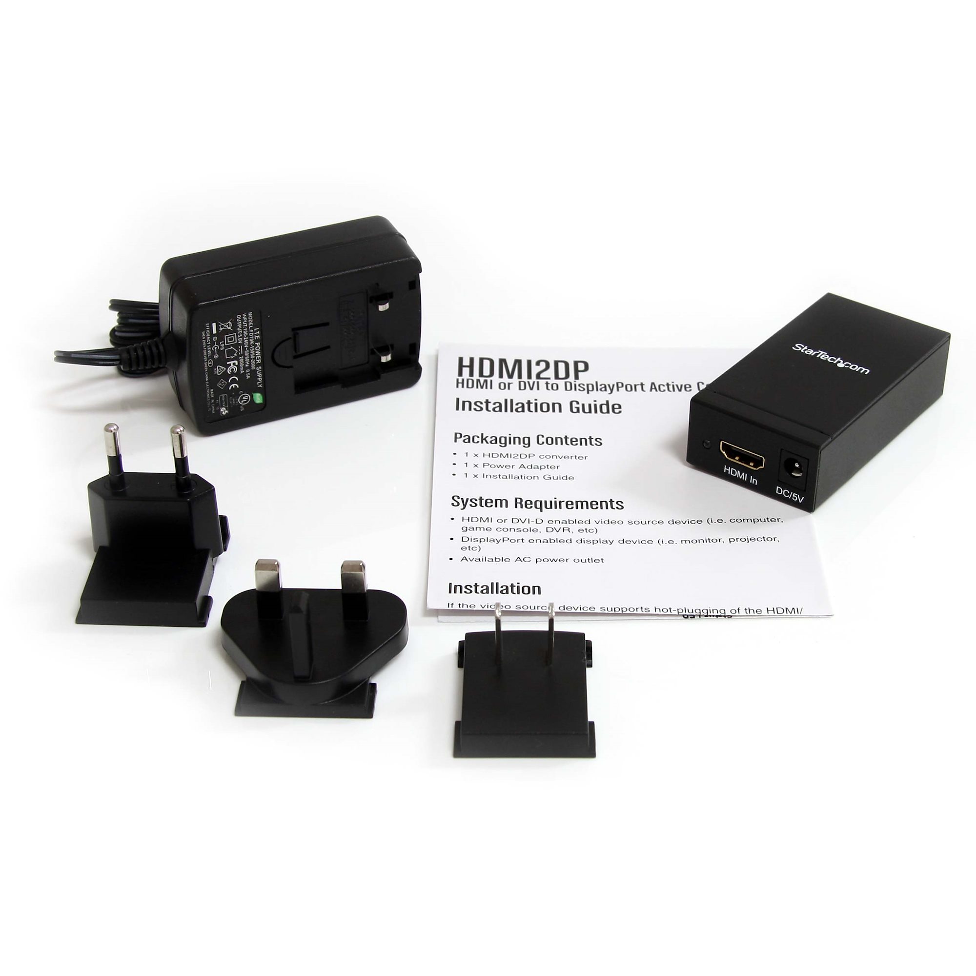 This is HDMI to DisplayPort Adapter 82mm - 1920 x 1200 manufactured by StarTech.com. The manufacturer part number is HDMI2DP. It is built with a/an displayport video output . It exhibits a maximum 1920 x 1200 resolution . In addition, it includes 1 video output(s) . Furthermore, the cable has a 82mm of length. It includes a standard hdmi video input .