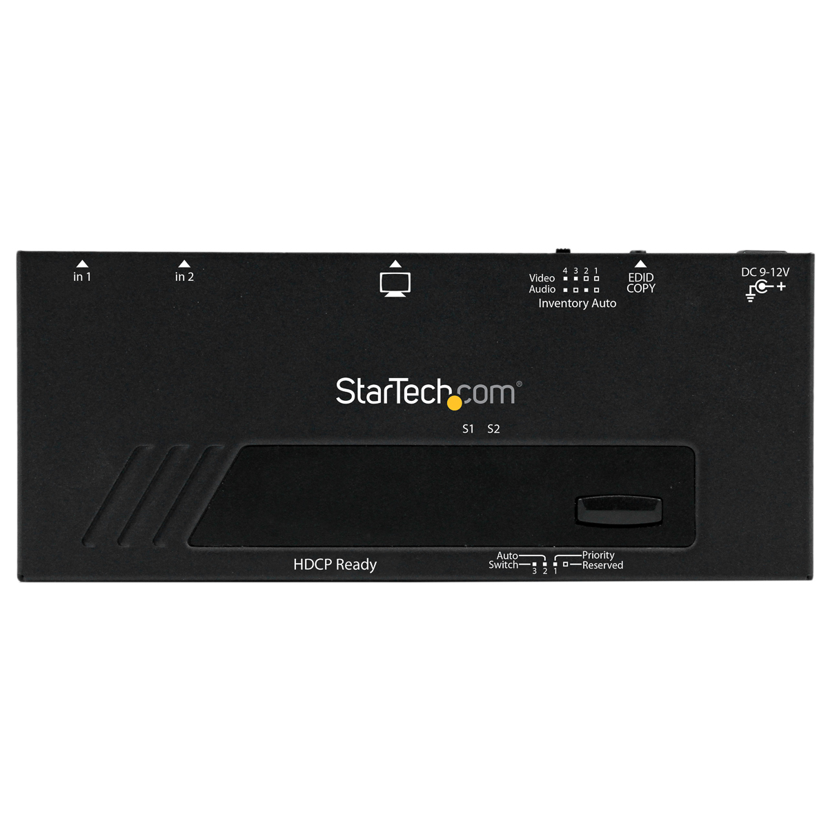 This is 2 Port 2 x 1 HDMI Switch 1920 x 1200 manufactured by StarTech.com. The manufacturer part number is VS221HDQ. The given dimensions of the product include 65 x 156 x 20mm. The typical product's weight is 285g. This switch device is highly durable product with a variety of applications. It has an attractive hdmi type video connection . This product features 2 number of ports. The product has 2 dedicated video inputs . It exhibits a maximum 1920 x 1200 resolution . In addition, the height is 20mm. Moreover, the product gets power from ac adapter. Furthermore, the product is 65mm wide. The product comes in 156mm depth. In addition, it includes 1 video output(s) . It has a/an hdmi type audio connection .