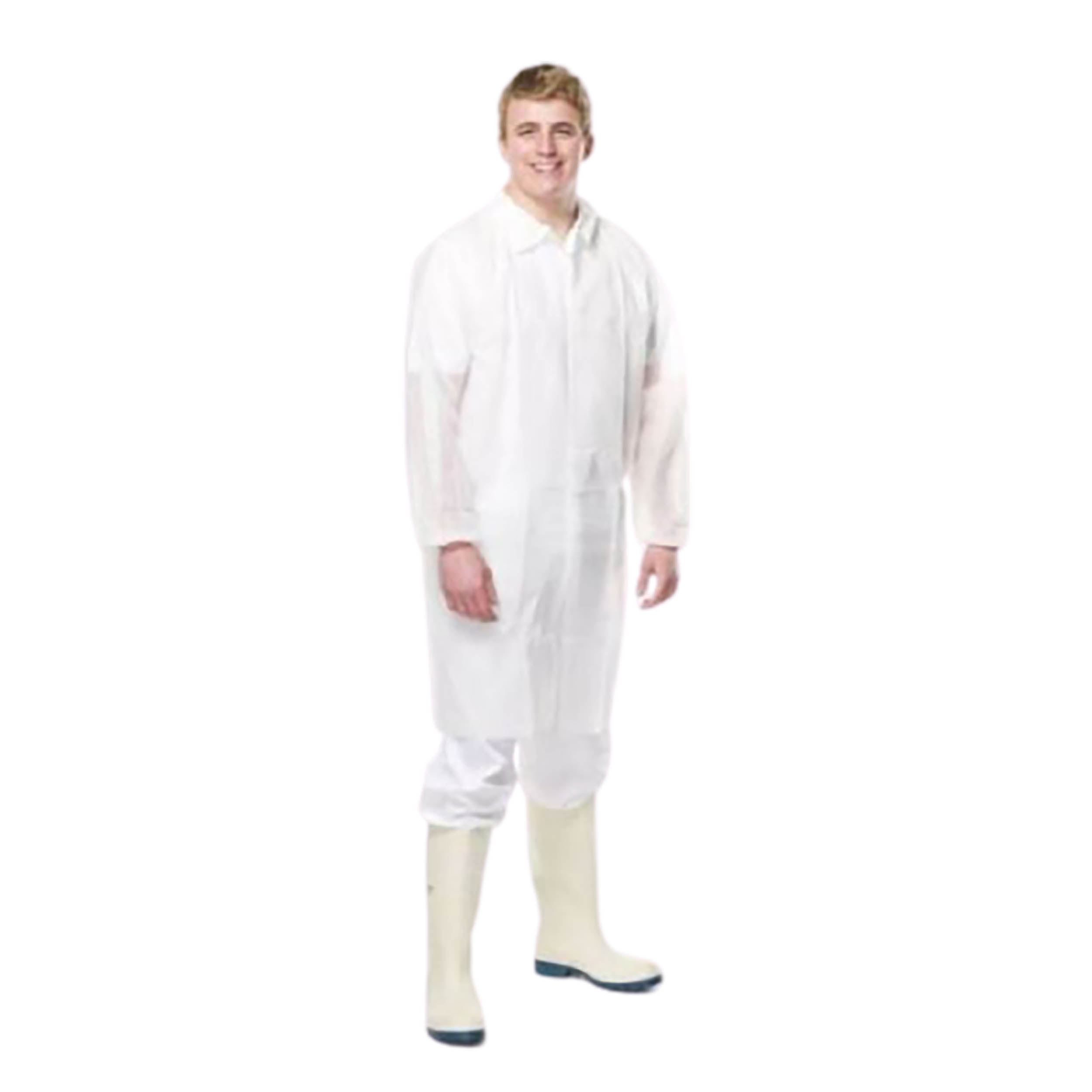 This is White Unisex Disposable Lab Coat L manufactured by Reldeen. The manufacturer part number is V0046. It is a velcro closure with unique specifications. In addition, unisex is the available "Gender" of the product. It has a decent white colour. The product is made from highly stable and reliable spun bond polypropylene. Its material offers a/an splash repellent properties . The product is available in l size.