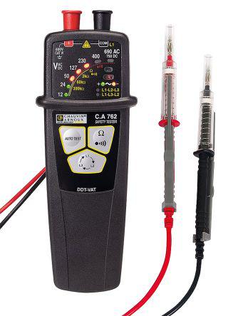 This is CA762 IP2X Voltage Indicator Continuity Check CAT IV 600 V manufactured by Chauvin Arnoux. The manufacturer part number is P01191762A. Moreover, its safety category level is cat iv . Its safety category voltage is 600v . The given dimensions of the product include 163 x 64 x 40mm. The typical product's weight is 210g. It is IP rated with ip65. It has a maximum 690 v ac, 750 v dc voltage . While it has ca762 ip2x of model number. It has a continuity check feature yes . In addition, the height is 40mm. Furthermore, the product is 64mm wide. Its accurate length is 163mm. Whereas, the minimum operating temperature of the product is -15°c. This aaa battery, lr3 battery battery is comparatively much efficient than common batteries. It has a maximum operating temperature of +45°c. Moreover, the product gets power from battery. It provides robust safety and is complied with cat iv 600 v safety category.