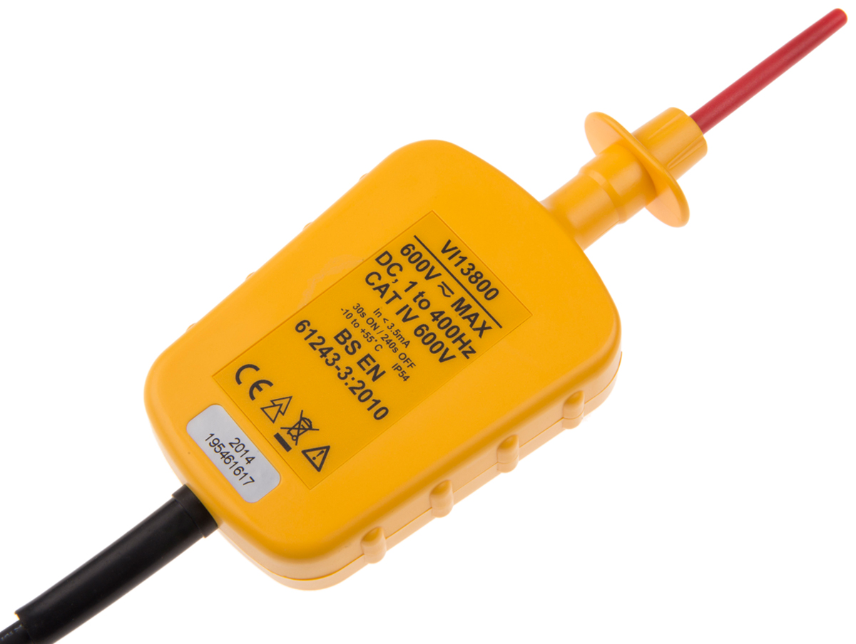 This is Voltage Indicator CAT III 1000V CAT IV 600 V manufactured by Martindale. The manufacturer part number is VI13800. It features a remarkable led display. Its safety category voltage is 1000 v, 600 v . The given dimensions of the product include 205 x 67 x 27mm. The typical product's weight is 130g. It is IP rated with ip54. Moreover, its safety category level is cat iii, cat iv . It has a maximum 600v ac/dc voltage . While it has vi13800 of model number. In addition, the height is 27mm. Furthermore, the product is 67mm wide. Its accurate length is 205mm. Whereas, the minimum operating temperature of the product is -10°c. It has a maximum operating temperature of +55°c. Moreover, the product gets power from from unit under test. It provides robust safety and is complied with cat iii 1000 v, cat iv 600v safety category.