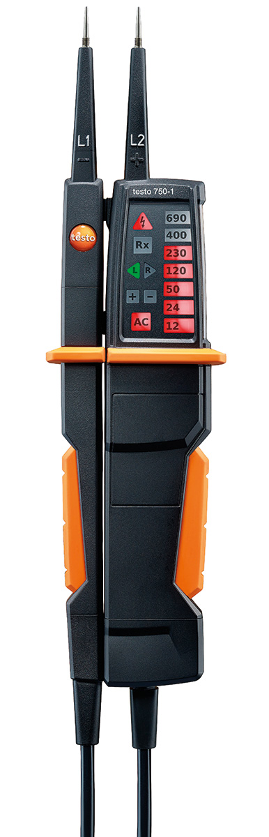 This is 750-1 Voltage Indicator Continuity Check CAT 3 1000 V CAT 4 600 V With RS Calibration manufactured by Testo. The manufacturer part number is 0590 7501. It features a remarkable led display. Its safety category voltage is 600 v, 1000 v . The given dimensions of the product include 270 x 65 x 35mm. The typical product's weight is 119g. It is IP rated with ip64. Moreover, its safety category level is cat 3, cat 4 . It has a maximum 690v ac/dc voltage . While it has 750-1 of model number. It has a continuity check feature yes . In addition, the height is 35mm. Moreover, the product gets power from battery. Furthermore, the product is 65mm wide. Its accurate length is 270mm. Whereas, the minimum operating temperature of the product is -10°c. This aaa battery is comparatively much efficient than common batteries. It has a maximum operating temperature of +50°c. It provides robust safety and is complied with cat iii 1000 v, cat iv 600v safety category.