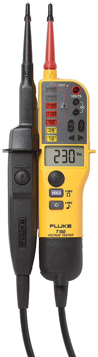 The Fluke T150 is a two-pole voltage indicator designed for everyday electrical testing. It is used to check live voltage, confirm continuity, and trip RCDs safely during inspections and fault finding. It is intended for real electrical environments, not just light testing. This tool is commonly used by electricians, maintenance technicians, and engineers who need fast and reliable checks before working on circuits.