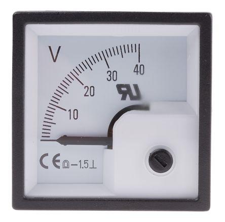 This is DC Analogue Panel Voltmeter 40V 46 x 46 mm 1.5 % Accuracy manufactured by RS Pro. The manufacturer part number is 901-0545. A bespoke product is a robust voltmeter meter with various applications. Moreover, its cutout is 46mm in width . While its minimum temperature is -25°c. The product rs pro, is a highly preferred choice for users. Its meter accuracy is 1.5 % . This product harbours dc current. The product comes in 39mm depth. The product has +50°c maximum temperature. The product complies with ce, rohs compliant, tuv certified. Its cutout height is 46mm . Its measurement range is 0 → 40v .