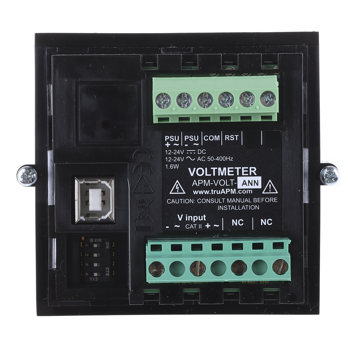 This is Digital Voltmeter LCD display 4-Digits 1 % 68 x 68 mm manufactured by Trumeter. The manufacturer part number is APM-VOLT-ANN. It features a remarkable lcd display. A bespoke product is a robust voltmeter meter with various applications. Moreover, its cutout is 68mm in width . While its minimum temperature is -10°c. Its meter accuracy is 1 % . It contains 4 digits . This product harbours ac, dc current. The product comes in 53mm depth. The product has +60°c maximum temperature. Features 12 → 24 v ac/dc supply voltage. Its cutout height is 68mm . It has a simulated analogue display analogue effect . Its measurement range is 0 → 600 v dc, 0 → 600v ac .