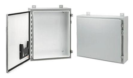 This is Type 12/13 Steel 16x20x6" Enclosure manufactured by Hoffman Enclosures. The manufacturer part number is A162006LP. Its external mounting is of bracket type . The product complies with all safety standards, such as csa file no: 42186, cul listed per csa c22.2 no:94, iec 60529, ip65, type 12, ul 508a listed, 13 file no: e61997. It has a pad lock type door lock . It has a decent grey colour. It is specifically designed for the protection of junction box . Additionally, it has a collar stud type internal mounting . It has an external depth of 152mm. Applications Information involves outdoor. The product's body is nicely designed from steel materials. Features 406 x 508 x 152mm external caliber. It has a transparent door no . While its external height is 406 mm. The product is 508 mm wide.