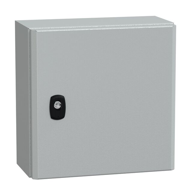 This is Spacial S3D IP66 Wall Box Steel Grey 300 x 300 x 150mm manufactured by Schneider Electric. The manufacturer part number is NSYS3D3315P. Its RAL code is ral 7035 . Its external mounting is of bracket type . Better World Verification Options - green premium. Is it a better world product? yes. It is IP rated with ip66. The product panelset s3d, is a highly preferred choice for users. It has a decent grey colour. It contains a gland plate yes . It includes a chassis plate no . It has an external depth of 150mm. It has a double bar type door lock . The product's body is nicely designed from steel materials. Additionally, it has a panel type internal mounting . It has a transparent door no . While its external height is 300 mm. It has a fixing kit yes . The product is 300 mm wide. It is rated with ip66. The product is made from highly stable and reliable metal, steel. Features a typical area dimensions of 140in² (900cm²). A type of enclosure container. The product's diameters include 11.811" l x 11.811" w (300.00mm x 300.00mm). It has a long 5 weeks standard lead time. It has a classic gray colour. In addition, the height is 7.677" (195.00mm). In addition, bulk is the available packaging type of the product. Design Information: hinged door.
