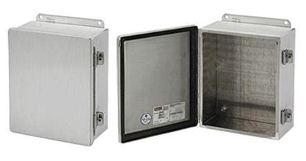 This is J Box;Hinged;Aluminium14x12x6"NEMA12 manufactured by Hoffman Enclosures. The manufacturer part number is A1412CHAL. Its external mounting is of screw type . It has a decent unpainted colour. It is specifically designed for the protection of components and controls in indoor . Additionally, it has a welded nut type internal mounting . It has an external depth of 152mm. Applications Information involves indoor. The product's body is nicely designed from aluminium materials. Features 394 x 329 x 152mm external caliber. It has a transparent door no . While its external height is 394 mm. The product is 329 mm wide.