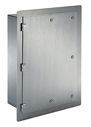 This is Wall Box Stainless Steel Grey 406 x 305 x 152mm manufactured by Hoffman Enclosures. The manufacturer part number is AFMSC16126SS. Its external mounting is of flange, flush type . The product complies with all safety standards, such as cul listed per csa c22.2 no. 94, file no. e61997, iec 60529, type 12, type 13, type 4, type 4x, ul 508a listed. It has a screw type door lock . It has a decent grey colour. It is specifically designed for the protection of instrumentation . It has an external depth of 152mm. Applications Information involves electrical. The product's body is nicely designed from stainless steel materials. Features 406 x 305 x 152mm external caliber. It has a transparent door no . While its external height is 406 mm. It has a fixing kit yes . The product is 305 mm wide.