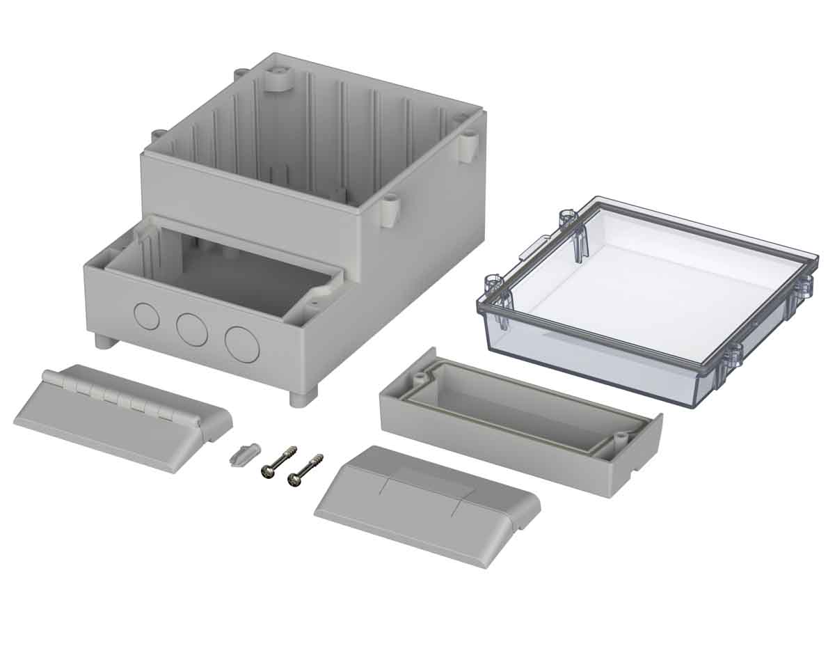 The 41130109 crafted from durable grey polystyrene, offering IP65 protection against dust and water. It is secure and reliable housing of electronic components in harsh environmental conditions.