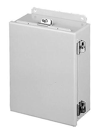 This is J BoxHinged Cover14x12x6"GreySteel manufactured by Hoffman Enclosures. The manufacturer part number is A1412CHNF. It has a decent grey colour. It is specifically designed for the protection of junction box . Additionally, it has a welded nut type internal mounting . Its external mounting is of screw type . Applications Information involves indoor, outdoor. The product's body is nicely designed from steel materials. Features 394 x 329 x 152mm external caliber. It has a transparent door no .