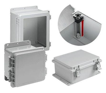 This is Wall Box Polyester Light Grey 206 x 155 x 111mm manufactured by Hoffman Enclosures. The manufacturer part number is A864PHC. Its external mounting is of bracket type . It has a latch type door lock . It has a decent light grey colour. It is specifically designed for the protection of instrumentation . Additionally, it has a din rail, panel type internal mounting . It has an external depth of 111mm. Applications Information involves electrical. The product's body is nicely designed from polyester materials. Features 206 x 155 x 111mm external caliber. It has a transparent door no . While its external height is 206 mm. The product also provides special features, such as dustless in-field modifications using standard tools, easy, lighter-weight than fiberglass, recyclable. The product is 155 mm wide.