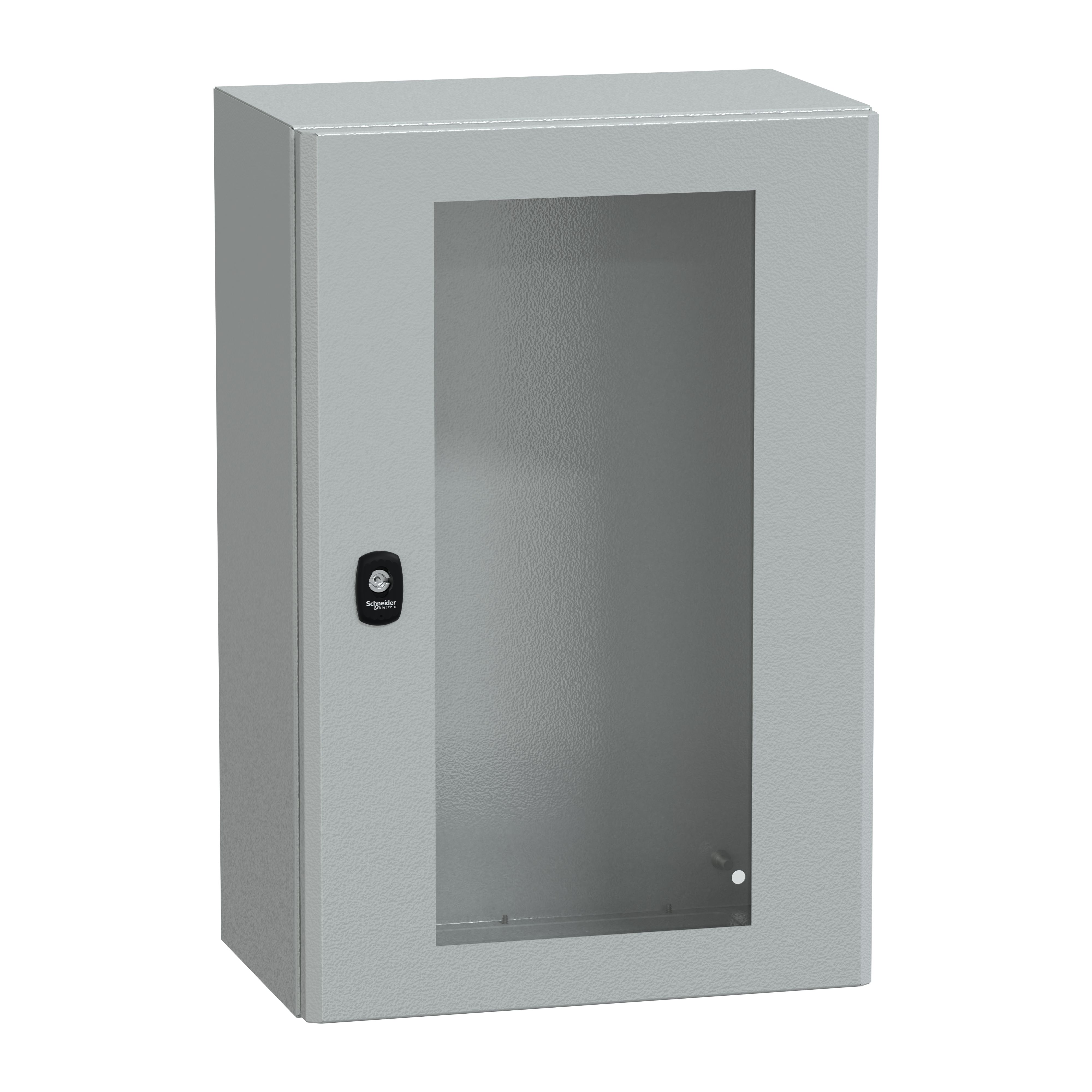 This is S3D glazed door.H600xW400xD250 manufactured by Schneider Electric. The manufacturer part number is NSYS3D6425T. Better World Verification Options - green premium. Is it a better world product? yes. It is IP rated with ip66. The product panelset s3d, is a highly preferred choice for users. It has an external depth of 250mm. The product's body is nicely designed from steel materials. While its external height is 600 mm. The product is 400 mm wide.