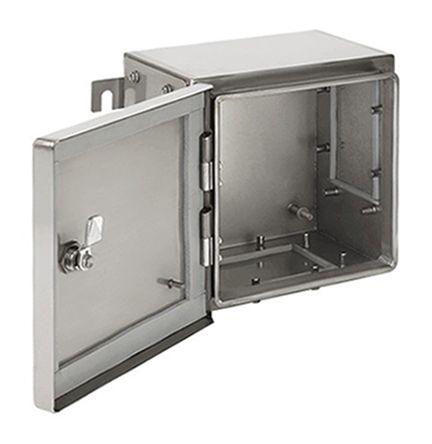This is Wall Box Stainless Steel Grey 306 x 306 x 160mm manufactured by Hoffman Enclosures. The manufacturer part number is ATEX303016SS63. Its external mounting is of bracket type . The product is certified with atex hazardous area certification. The product complies with all safety standards, such as aex, atex, ce, cul type 12, cul type 4, cul type 4x, iec, iecex. It has a latch type door lock . It has a decent grey colour. It contains a gland plate yes . It is specifically designed for the protection of instrumentation . Additionally, it has a din rail, panel type internal mounting . It has an external depth of 160mm. Applications Information involves electrical. The product's body is nicely designed from stainless steel materials. Features 306 x 306 x 160mm external caliber. It has a transparent door no . While its external height is 306 mm. The product is 306 mm wide.