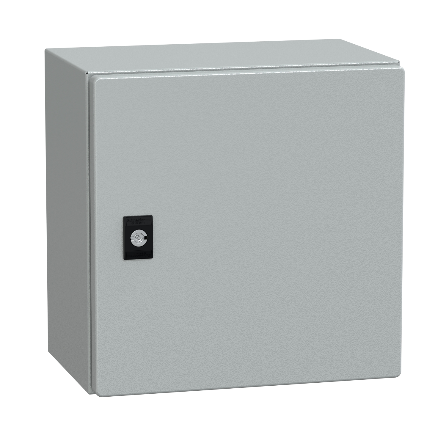 This is Spacial CRN IP66 Wall Box Steel Grey 300 x 300 x 200mm manufactured by Schneider Electric. The manufacturer part number is NSYCRN33200. Its RAL code is ral 7035 . Its external mounting is of bracket type . Better World Verification Options - green premium. Is it a better world product? yes. It is IP rated with ip66. The product spacial crn, is a highly preferred choice for users. It has a decent grey colour. It contains a gland plate yes . It includes a chassis plate no . It has an external depth of 200mm. It has a double bar type door lock . The product's body is nicely designed from steel materials. Additionally, it has a panel type internal mounting . It has a transparent door no . While its external height is 300 mm. It has a fixing kit no . The product also provides special features, such as 120° door opening. The product is 300 mm wide. It has a standard ik10 IK rating . It is rated with ip66. The product is made from highly stable and reliable metal, steel. The product is rohs3 compliant. Features a typical area dimensions of 140in² (900cm²). A type of enclosure container. It is shipped in box package . The product's diameters include 11.811" l x 11.811" w (300.00mm x 300.00mm). It has a long 8 weeks standard lead time. Its typical moisture sensitivity level is 1 (unlimited). It has a classic gray colour. In addition, the height is 7.874" (200.00mm). Design Information: cover included.
