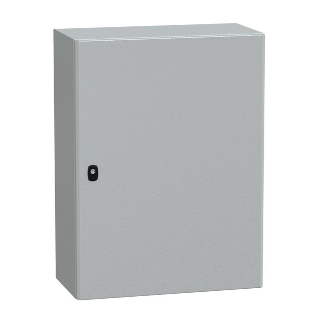 This is Spacial S3D Wall Box Steel Grey 800 x 600 x 300mm manufactured by Schneider Electric. The manufacturer part number is NSYS3D8630P. Its RAL code is ral 7035 . Its external mounting is of bracket type . Better World Verification Options - green premium. Is it a better world product? yes. It is IP rated with ip66. The product panelset s3d, is a highly preferred choice for users. It has a decent grey colour. It contains a gland plate yes . It includes a chassis plate yes . It has a transparent door no . It has an external depth of 300mm. It has a double bar type door lock . The product's body is nicely designed from steel materials. Additionally, it has a panel type internal mounting . It has a standard ik10 IK rating . While its external height is 800 mm. It has a fixing kit yes . The product also provides special features, such as 120° door opening. The product is 600 mm wide. It is rated with ip66. The product is made from highly stable and reliable metal, steel. Features a typical area dimensions of 744in² (4800cm²). A type of enclosure container. The product's diameters include 31.496" l x 23.622" w (800.00mm x 600.00mm). It has a long 5 weeks standard lead time. It has a classic light gray colour. In addition, the height is 11.811" (300.00mm). In addition, bulk is the available packaging type of the product. Design Information: hinged door.