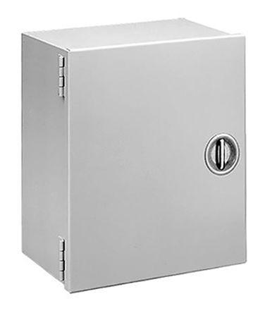 This is Wall Box Steel Grey 610 x 610 x 321mm manufactured by Hoffman Enclosures. The manufacturer part number is A24N2412LP. Its external mounting is of wall type . The product complies with all safety standards, such as csa file no. 42184, cul listed per csa c22.2 no.40, file no. e27567, iec 60529, type 1, ul 50, 50e listed. It has a t-handle latch type door lock . It has a decent grey colour. It is specifically designed for the protection of instrumentation . It has an external depth of 321mm. Applications Information involves electrical. The product's body is nicely designed from steel materials. Features 610 x 610 x 321mm external caliber. It has a transparent door no . While its external height is 610 mm. The product also provides special features, such as removable doors have butt hinges. The product is 610 mm wide.