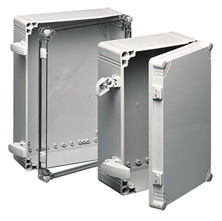 This is Enclosure;J Box Type 4X; QR Clear Cover manufactured by Hoffman Enclosures. The manufacturer part number is Q604018PCIQRCCR. It has a decent light grey colour. It is specifically designed for the protection of instrumentation . It has an external depth of 182mm. Applications Information involves electrical. The product's body is nicely designed from polycarbonate materials. Features 600 x 400 x 182mm external caliber. It has a transparent door yes . While its external height is 600 mm. The product is 400 mm wide.