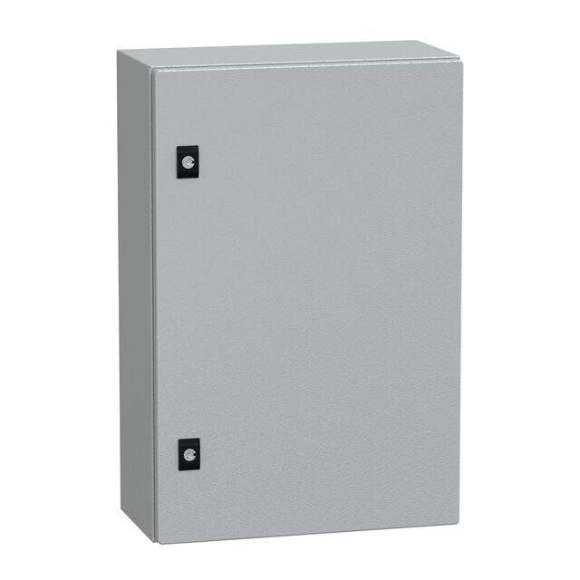 This is Spacial CRN IP66 Wall Box Steel Grey 600 x 400 x 200mm manufactured by Schneider Electric. The manufacturer part number is NSYCRN64200P. Its external mounting is of bracket type . It has a double bar type door lock . It has a transparent door no . It includes a chassis plate no . It has an external depth of 200mm. It has a fixing kit no . It is IP rated with ip66. It has a decent grey colour. It is specifically designed for the protection of multipurpose . The product's body is nicely designed from steel materials. The product also provides special features, such as 120° door opening. Its RAL code is ral 7035 . Better World Verification Options - green premium. Is it a better world product? yes. The product spacial crn, is a highly preferred choice for users. It contains a gland plate yes . Additionally, it has a panel type internal mounting . While its external height is 600 mm. The product is 400 mm wide. It has a standard ik10 IK rating . It is rated with ip66. The product is made from highly stable and reliable metal, steel. Features a typical area dimensions of 372in² (2400cm²). A type of enclosure container. The product's diameters include 23.622" l x 15.748" w (600.00mm x 400.00mm). It has a long 5 weeks standard lead time. It has a classic light gray colour. In addition, the height is 7.874" (200.00mm). In addition, bulk is the available packaging type of the product. Design Information: hinged door.