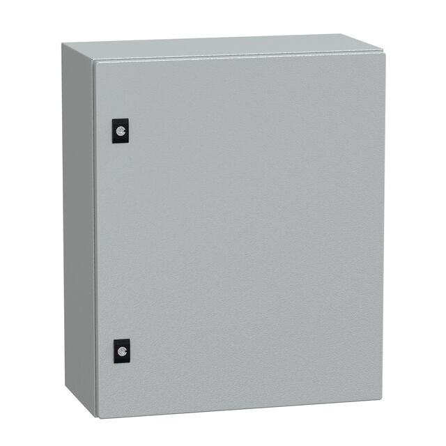 This is Spacial CRN IP66 Wall Box Steel Grey 600 x 500 x 250mm manufactured by Schneider Electric. The manufacturer part number is NSYCRN65250P. Its RAL code is ral 7035 . Its external mounting is of bracket type . Better World Verification Options - green premium. Is it a better world product? yes. It is IP rated with ip66. The product spacial crn, is a highly preferred choice for users. It has a decent grey colour. It contains a gland plate yes . It includes a chassis plate no . It has a transparent door no . It has an external depth of 250mm. It has a double bar type door lock . The product's body is nicely designed from steel materials. Additionally, it has a panel type internal mounting . It has a standard ik10 IK rating . While its external height is 600 mm. It has a fixing kit no . The product also provides special features, such as 120° door opening. The product is 500 mm wide. It is rated with ip66. The product is made from highly stable and reliable metal, steel. Features a typical area dimensions of 465in² (3000cm²). A type of enclosure container. The product's diameters include 23.622" l x 19.685" w (600.00mm x 500.00mm). It has a long 5 weeks standard lead time. It has a classic light gray colour. In addition, the height is 9.843" (250.00mm). In addition, bulk is the available packaging type of the product. Design Information: hinged door.
