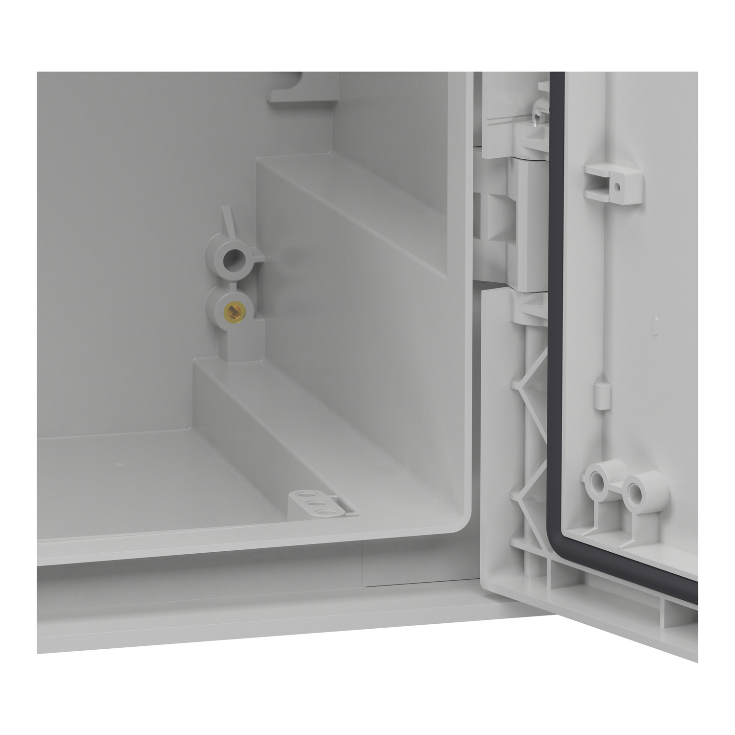 This is IP66 PET Wall Box 350mm x 1056 mm x 852 mm manufactured by Schneider Electric. The manufacturer part number is NSYPLM108G. Its external mounting is of bracket type . It has a 4-point lock, double bar type door lock . It has a transparent door no . The product complies with all safety standards, such as iec 60529, iec 62208, iec 62262. It includes a chassis plate no . It has an external depth of 350mm. It has a fixing kit no . It is IP rated with ip66. It has a decent grey colour. It is specifically designed for the protection of instrumentation . The product's body is nicely designed from pet materials. The product also provides special features, such as flame resistant. Its RAL code is ral 7035 . Better World Verification Options - green premium. Is it a better world product? yes. The product panelset, is a highly preferred choice for users. It contains a gland plate no . Additionally, it has a panel type internal mounting . While its external height is 1056 mm. The product is 852 mm wide. It has a standard ik10 IK rating . It is rated with ip66, nema 4x,13. The product is made from highly stable and reliable fiberglass/polyester. The product is rohs3 compliant. Features a typical area dimensions of 1394in² (8997cm²). A type of enclosure container. It is shipped in box package . The product's diameters include 41.575" l x 33.543" w (1056.00mm x 852.00mm). It has a long 8 weeks standard lead time. Its typical moisture sensitivity level is 1 (unlimited). It has a classic gray colour. In addition, the height is 13.780" (350.00mm). Design Information: cover included, hinged door.