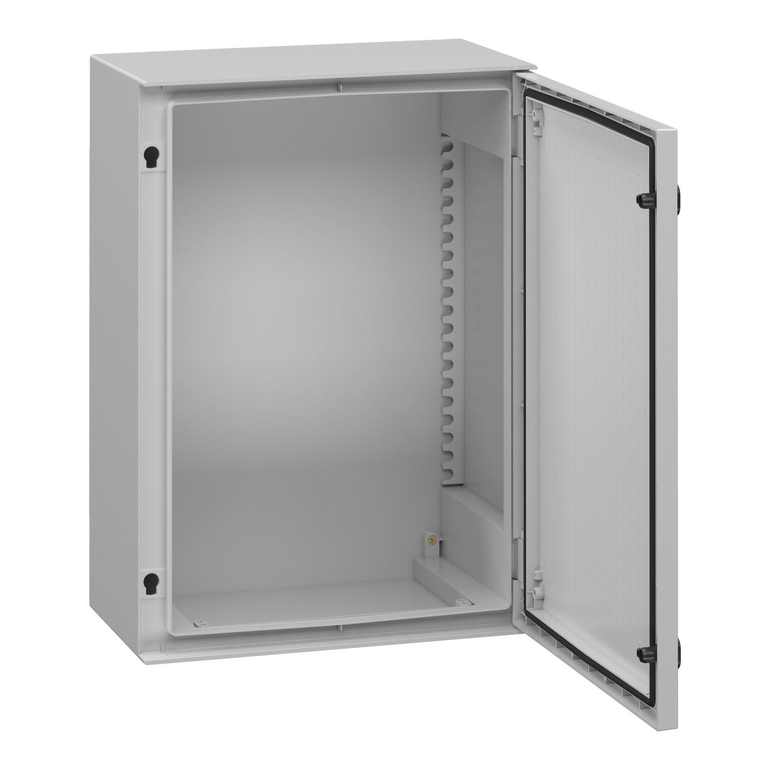 This is Thalassa PLM IP66 Wall Box PET Grey 747 x 536 x 300mm manufactured by Schneider Electric. The manufacturer part number is NSYPLM75G. Its external mounting is of bracket type . It has a double bar type door lock . It has a transparent door no . It includes a chassis plate no . It has an external depth of 300mm. It has a fixing kit no . It is IP rated with ip66. It has a decent grey colour. It is specifically designed for the protection of instrumentation . The product's body is nicely designed from pet materials. The product also provides special features, such as flame resistant. Its RAL code is ral 7035 . Better World Verification Options - green premium. Is it a better world product? yes. The product panelset, is a highly preferred choice for users. It contains a gland plate no . Additionally, it has a panel type internal mounting . While its external height is 747 mm. The product is 536 mm wide. It has a standard ik10 IK rating . It is rated with ip66. The product is made from highly stable and reliable fiberglass/polyester. The product is rohs3 compliant. Features a typical area dimensions of 620in² (4003cm²). A type of enclosure container. It is shipped in box package . The product's diameters include 29.409" l x 21.102" w (747.00mm x 536.00mm). It has a long 8 weeks standard lead time. Its typical moisture sensitivity level is 1 (unlimited). It has a classic gray colour. In addition, the height is 11.811" (300.00mm). Design Information: cover included.