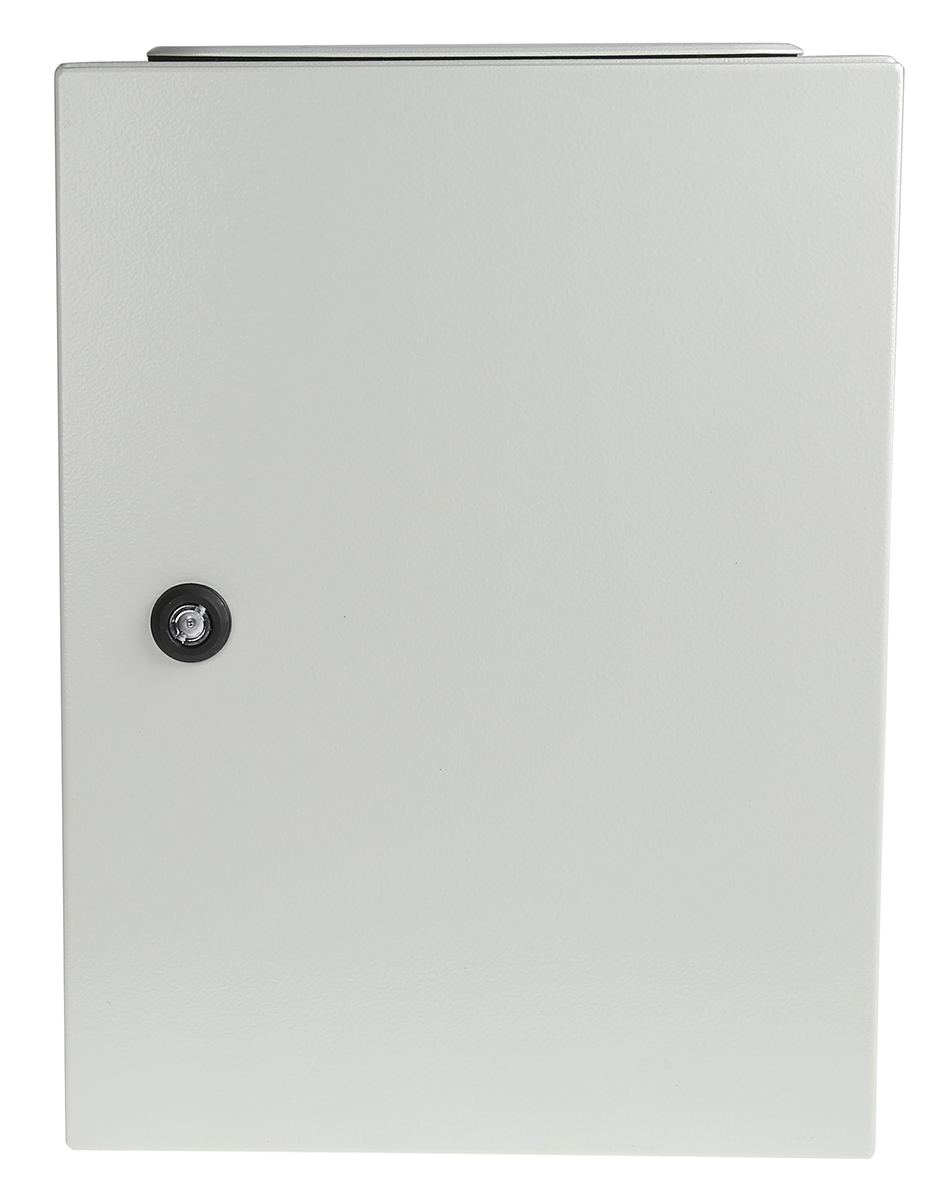 This is IP65 Wall Box Steel Grey 400 x 300 x 200mm manufactured by RS Pro. The manufacturer part number is 746-7352. Its external mounting is of bracket type . The product complies with all safety standards, such as en 60529, nema 4, rohs compliant. It is IP rated with ip65. It is specifically designed for the protection of electrical equipments . It has a decent grey colour. It contains a gland plate yes . It has a key type door lock . It includes a chassis plate yes . It has an external depth of 200mm. Applications Information involves electrical. The product's body is nicely designed from steel materials. Additionally, it has a panel type internal mounting . While its external height is 400 mm. It has a fixing kit no . The product also provides special features, such as 110° door opening. The product is 300 mm wide. It has a transparent door no .