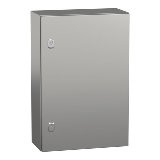 This is Spacial S3X 316 Stainless Steel Zinc Coated Steel Wall Box IK10 IP66 200mm x 600 mm x 400 mm manufactured by Schneider Electric. The manufacturer part number is NSYS3X6420H. Better World Verification Options - green premium. Is it a better world product? yes. It is IP rated with ip66. The product spacial s3x, is a highly preferred choice for users. It has a decent unpainted colour. It contains a gland plate no . It includes a chassis plate no . It has an external depth of 200mm. It has a double bar type door lock . The product's body is nicely designed from 316 stainless steel, zinc coated steel materials. While its external height is 600 mm. The product also provides special features, such as 120° door opening. The product is 400 mm wide. It has a standard ik10 IK rating . It is rated with ip66. The product is made from highly stable and reliable metal, stainless steel. Features a typical area dimensions of 372in² (2400cm²). A type of enclosure container. The product's diameters include 23.622" l x 15.748" w (600.00mm x 400.00mm). It has a long 5 weeks standard lead time. It has a classic gray colour. In addition, the height is 7.874" (200.00mm). In addition, bulk is the available packaging type of the product. Design Information: hinged door.
