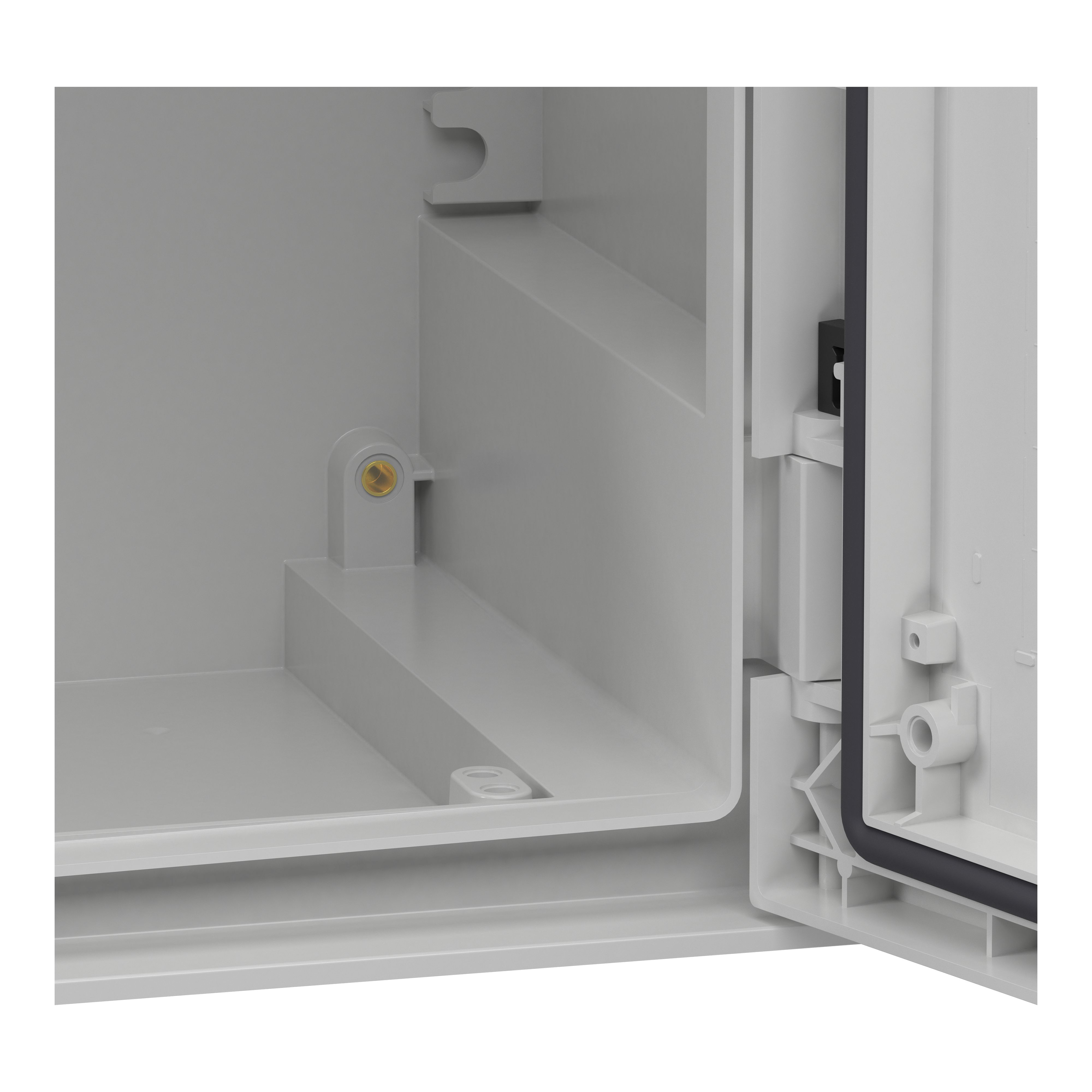 This is Fibreglass Reinforced Polyester Wall Box IP66 300mm x 747 mm x 536 mm manufactured by Schneider Electric. The manufacturer part number is NSYPLM75VG. The product is 536mm wide. It is IP rated with ip66. The product thalassa plm, is a highly preferred choice for users. It has a decent grey colour. It has an external depth of 300mm. The product's body is nicely designed from fibreglass reinforced polyester materials. Is it a better world product? yes. While its external height is 747mm. wall box is a versatile product designed to provide user-defined applications. It has a standard ik10 IK rating .