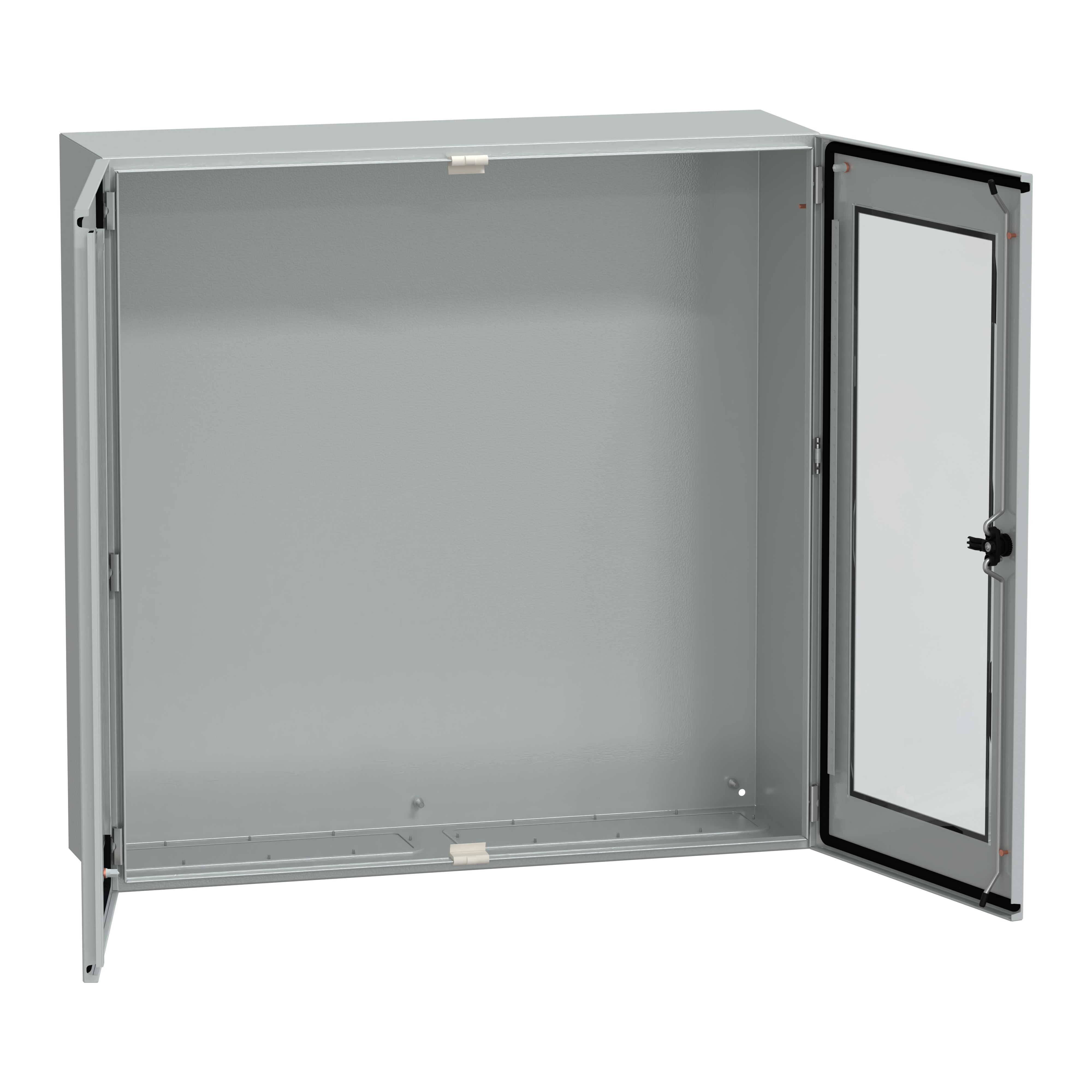This is Steel Wall Box IP55 300mm x 1200 mm x 1000 mm manufactured by Schneider Electric. The manufacturer part number is NSYS3D121030DT. Better World Verification Options - green premium. Is it a better world product? yes. It is IP rated with ip55. The product panelset s3d, is a highly preferred choice for users. It contains a gland plate no . It includes a chassis plate no . It has an external depth of 300mm. The product's body is nicely designed from steel materials. While its external height is 1200 mm. The product is 1000 mm wide.