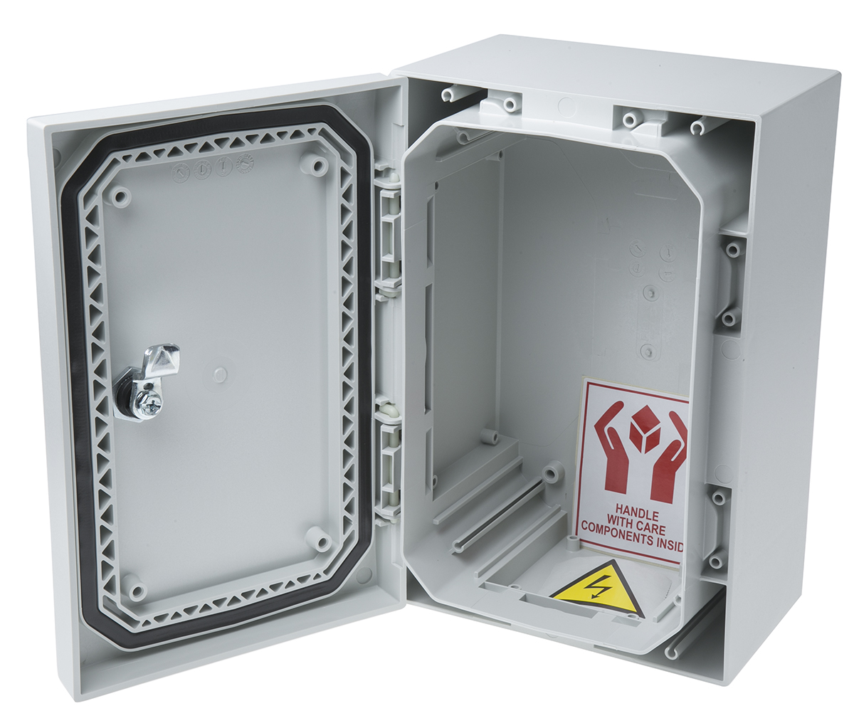 This model combines superior protection, ease of use, and value, perfect for installers and engineers in the UK. Unlike steel boxes, the polycarbonate build won’t rust or dent. Its high-security design, ease of installation, and compliance with UL 508A and EN/IEC standards make it a reliable option for various applications. A pre-fitted gasketed door, lockable hinge, and mounting plate reduce setup time, while the IP66/IK10 rating ensures optimal performance in harsh weather and impact-prone environments.