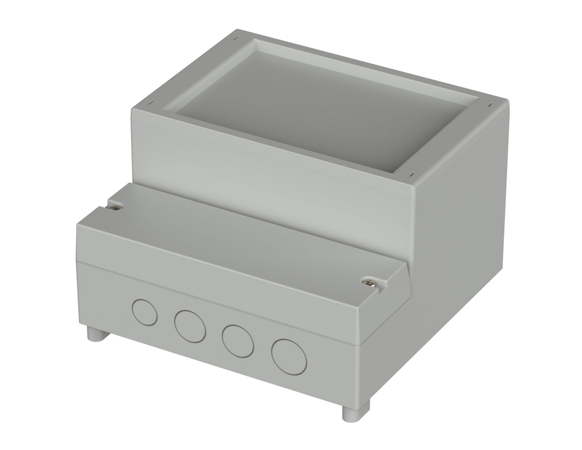 This is RegloCard-Plus Series ABS Wall Box IP65 161 mm x 166 mm manufactured by Bopla. The manufacturer part number is 41170609 RCP 170 F. Its RAL code is ral 7035 . It is IP rated with ip65. The product reglocard-plus, is a highly preferred choice for users. It has a decent light grey colour. It contains a gland plate no . It includes a chassis plate no . Its external mounting is of wall-mounting holes type . The product's body is nicely designed from abs materials. Additionally, it has a pcb guide, pcb mounting studs type internal mounting . While its external height is 161 mm. The product is 166 mm wide.