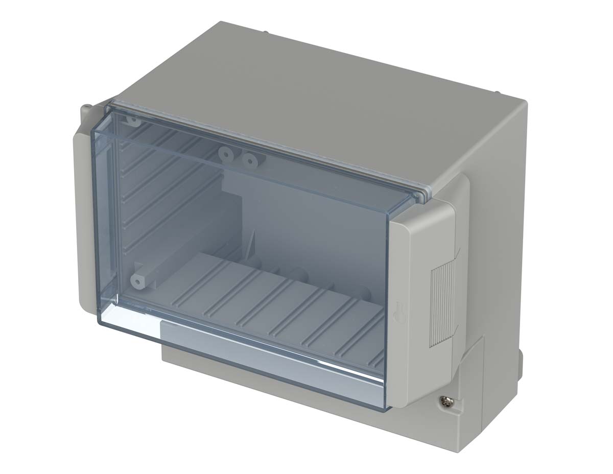 This is RegloCard-Plus Series ABS Polycarbonate Wall Box IP65 Viewing Window 166 mm x 161 mm x 121mm manufactured by Bopla. The manufacturer part number is 41170109 RCP 1700. Its RAL code is ral 7035 . Its external mounting is of wall-mounting holes type . It is IP rated with ip65. The product reglocard-plus, is a highly preferred choice for users. It has a decent light grey colour. It contains a gland plate no . It includes a chassis plate no . It has an external depth of 121mm. The product's body is nicely designed from abs, polycarbonate materials. Additionally, it has a pcb guide, pcb mounting studs type internal mounting . It has a transparent door yes . While its external height is 166 mm. It has a fixing kit no . The product is 161 mm wide.