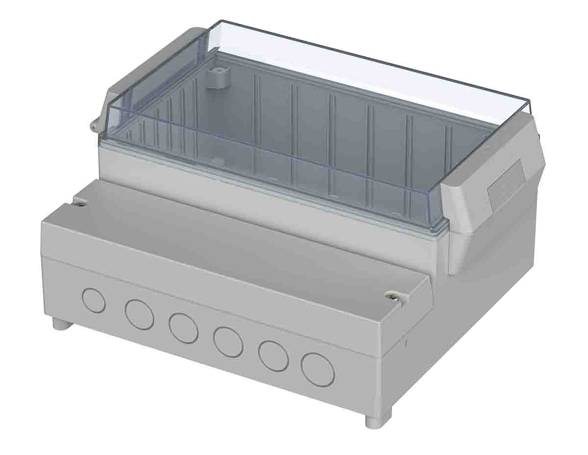 This is RegloCard-Plus Series ABS Polycarbonate Wall Box IP65 Viewing Window 213 mm x 185 mm x 104.5mm manufactured by Bopla. The manufacturer part number is 41200309 RCP 2000. Its RAL code is ral 7035 . Its external mounting is of wall-mounting holes type . It is IP rated with ip65. The product reglocard-plus, is a highly preferred choice for users. It has a decent light grey colour. It contains a gland plate no . It includes a chassis plate no . It has an external depth of 104.5mm. The product's body is nicely designed from abs, polycarbonate materials. Additionally, it has a pcb guide, pcb mounting studs type internal mounting . It has a transparent door yes . While its external height is 213 mm. It has a fixing kit no . The product is 185 mm wide.