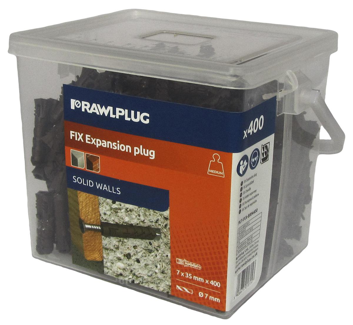 This is Rawl Fixings Nylon Wall Plug fixing hole diameter 5mm length 35mm manufactured by RawlPlug. The manufacturer part number is FKT-FIX-BRN400. The diameter of the fixing hole is 7mm. Its accurate length is 30mm. The product is made from highly stable and reliable steel. It comes in wall plug configuration.
