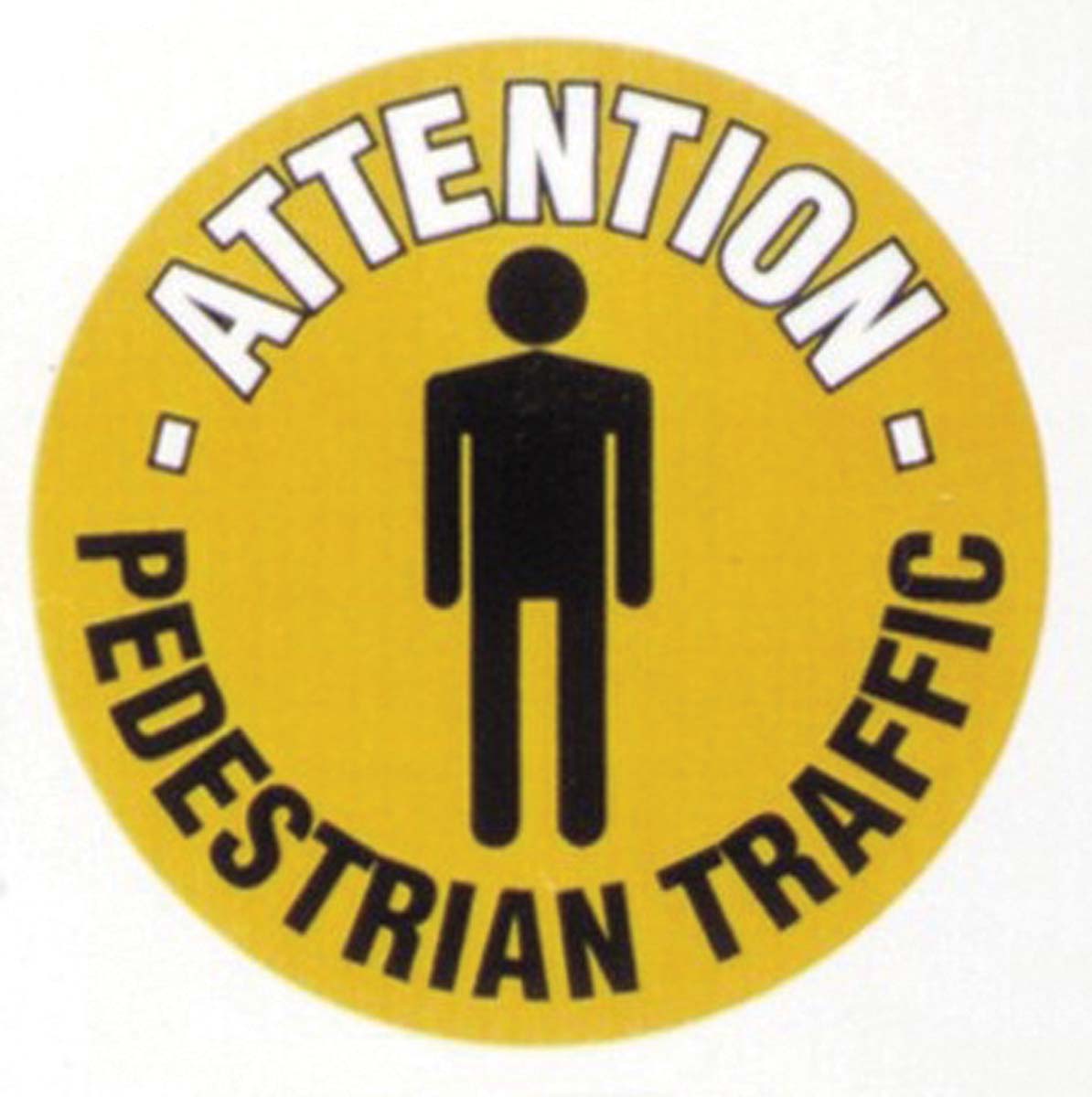 This is Pedestrians Sign with English Text PVC Hazard Warning manufactured by RS Pro. The manufacturer part number is 873-5925. It has a/an floor sign type sign . Its diameter is 430mm. It is created for area hazard type hazard . It has a decent yellow colour. The product is made from highly stable and reliable pvc. Its text message shows attention - pedestrian traffic . Additionally, it is self-adhesive yes . It includes a symbol and text . However, its text language is english . In addition, it displays pedestrians sign description .